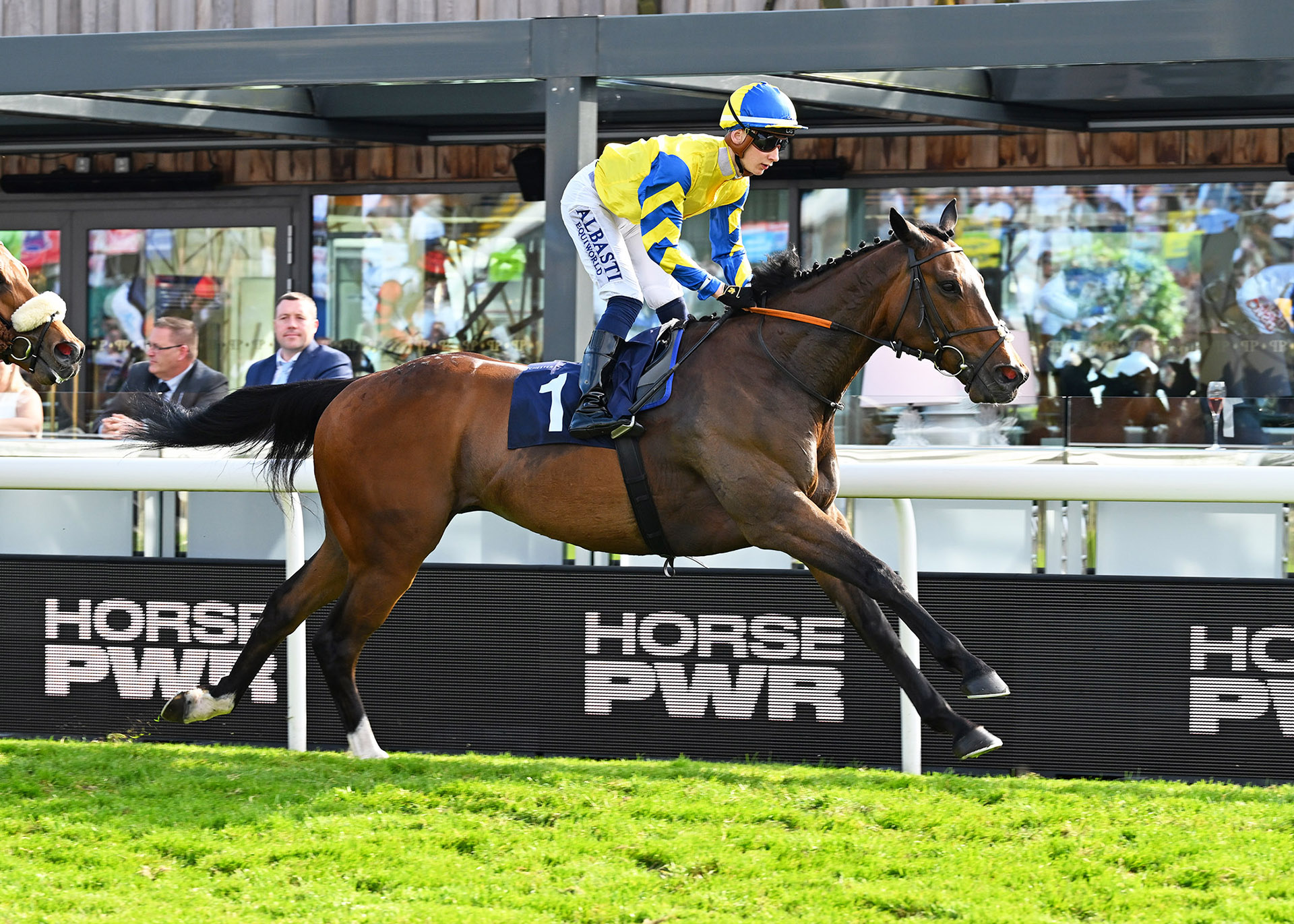 Not to be outdone by the widest stall, Percy’s Lad (16/5) was given a smart front-running ride under Richard Kingscote en route to an impressive 1 ½ length victory in the first race, scoring for training duo Daniel & Claire Kubler. Quickly into stride upon leaving the starting stalls, Percy’s Lad soon found himself in a comfortable lead at the head of affairs, blitzing the field along at a strong gallop with only market leader Dancing Magic (3/1F) and 11-year-old veteran Documenting (28/1) for company through the opening half mile of the contest. Flying round the home turn and still yet to be popped the question, Percy’s Lad extended away impressively under Kingscote passing the final furlong marker, ridden out to make sure in the closing stages to hold off Dancing Magic and Documenting in a race where very few managed to get involved. A successful team when joining forces, Kingscote was also successful for the Kublers last season aboard promising handicapper Astro King in the prestigious Cambridgeshire Heritage Handicap at Newmarket!