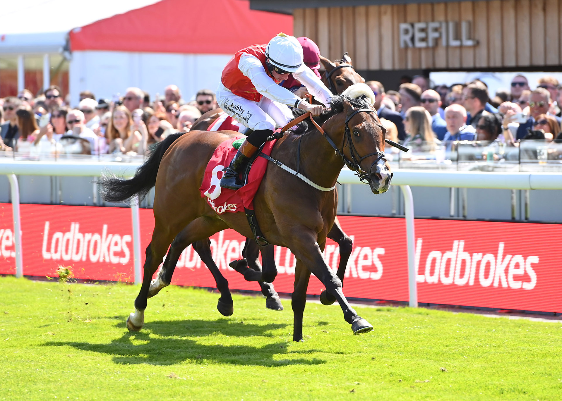 Building on his promising return at Sandown, Redorange (11/10F) justified market support in gritty style to take Race 2, grinding out a 1-length victory under Rossa Ryan for trainer Clive Cox. Smartly away, Redorange hugged the inside rail in third place for much of the contest, stalking early leader Ruby’s Profit (11/2) as the field were taken along at a good clip. Switching to the centre of the track around the home turn, Rossa Ryan manoeuvred Redorange into prime position with a furlong to go, edging into the lead with just a couple of shakes of the reins before sticking on determinedly to score by a slender margin. Connections always to be feared in sprint races, Cox and Al Mohamediya Racing also scored at Royal Ascot in 2020 with Golden Horde!