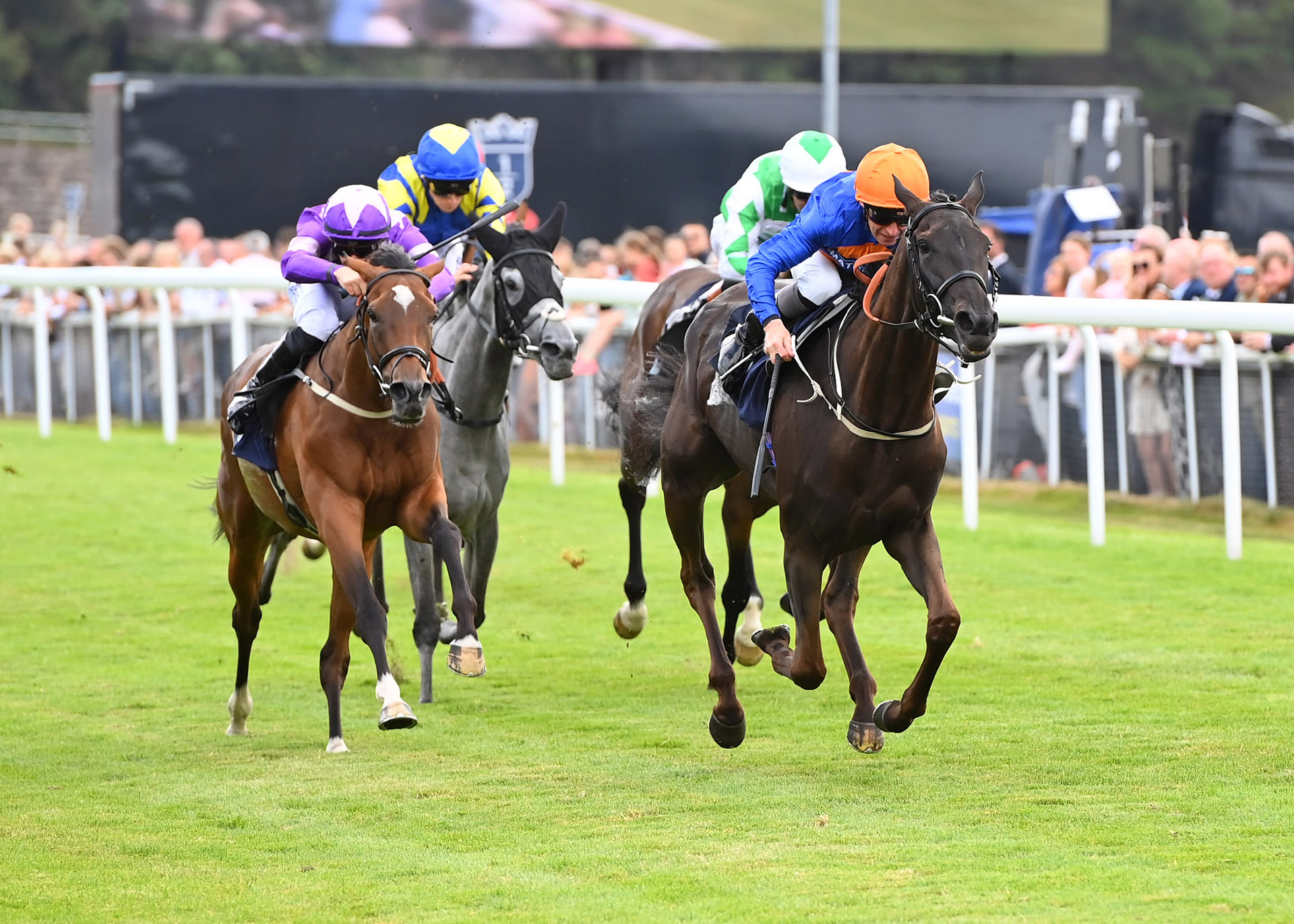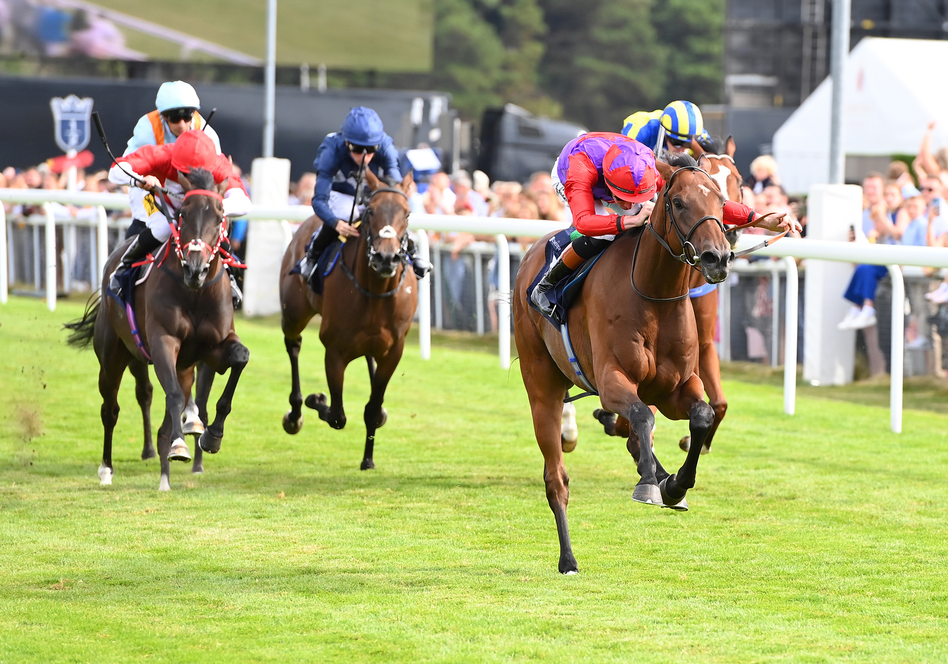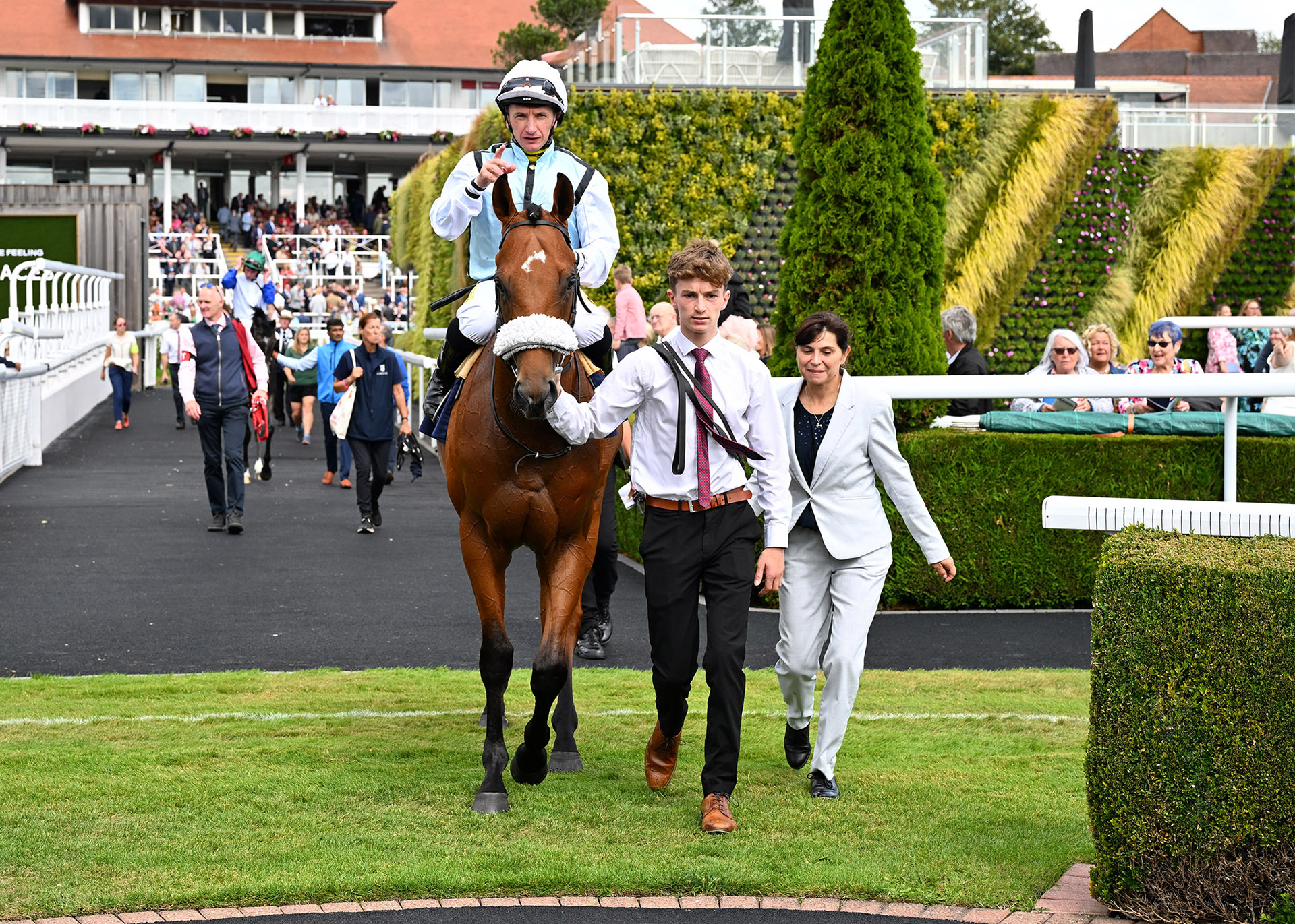 A winner here in June, Ghaiyya (9/2) repeated the feat in determined style when returning a narrow winner of the first race, scrambling home by ¾ of a length for Joe Fanning and Charlie Johnston. Always prominent to the outside of Mafting (16/5), Ghaiyya helped to set a good gallop out in front through the opening mile, racing a length clear of recent course runner-up Kokinelli (11/2) with half a mile to go. Swinging around the home bend still full of running, Ghaiyya was set alight by his rider at the two-furlong marker, and after managing to sneak a couple of lengths clear at the furlong pole, the leader ran on well to see out a tidy victory. Ever consistent, Johnston & Fanning also scored at Listed level in May with both Francophone and Madame Ambassador!