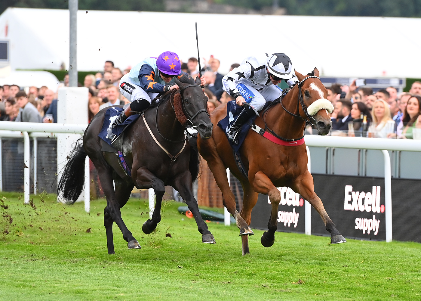 Recording a second course victory in a row, Hyperfocus (17/2) battled all the way to the line to score by just a nose in the third race, taking the spoils under Sean Kirrane for the in-form Tim Easterby yard. Adopting similar tactics to his recent victory here in June, Hyperfocus broke sharply and challenged for the lead during the first quarter of a mile, racing out wide of Dickieburd (2/1F) as the field remained well-bunched in behind. Coming under fierce pressure around Castle Bend and into the straight, Hyperfocus briefly looked to be treading water with a furlong and a half to race, Dickieburd now asserting out in front. However, finding his second wind, Hyperfocus rallied strongly in the final furlong, gradually pulling back the leader before getting his nose in front right on the line, marking up his tenth career victory under rules and taking him over £180K in career prize money!