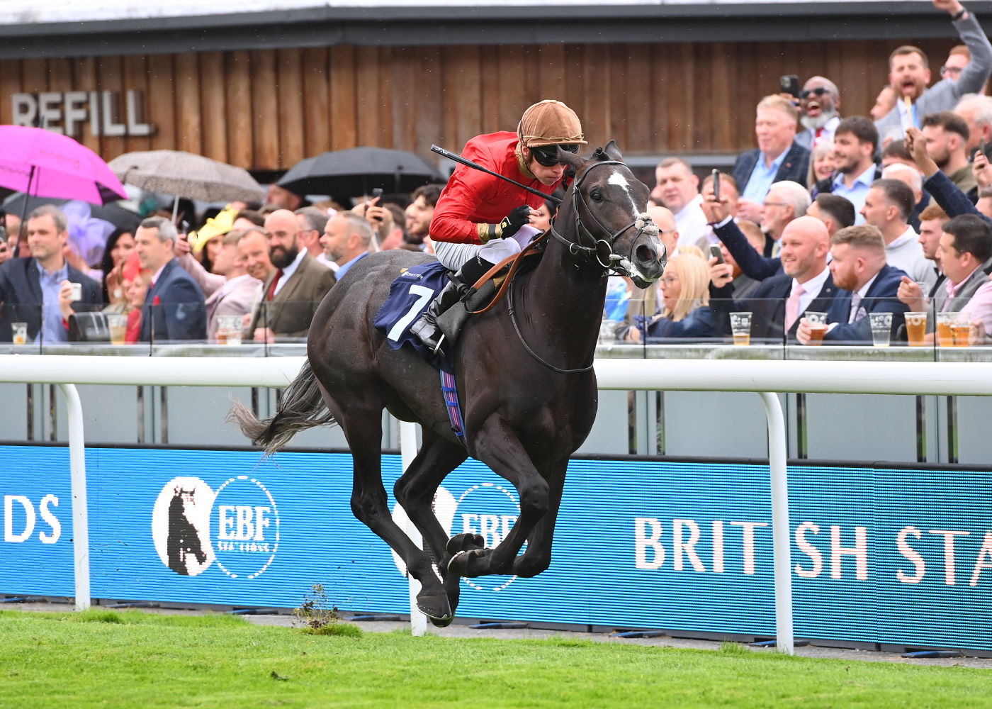 Making light of a much-reduced handicap mark, American Star (7/1) showed a remarkable upturn in form in the final race, impressively scooting clear up the run-in to score by 2 ¼ lengths for James Sullivan and Ruth Carr. Slowly away and racing in second-last place for much of the finale, American Star looked to have a lot of work to do from a very early stage, ridden along to keep up as Danzart (10/1) led the field past the three-furlong marker. Switched out wide as the prominent racers came under pressure, American Star still looked to be in a spot of bother around the home turn, shoved along to stay competitive. However, upon entering the home straight, American Star soon made rapid headway down the centre of the track, circling the field with a remarkable late surge before scoring decisively in the final 100 yards, marking up a 21st winner of the year for Carr and Sullivan!
