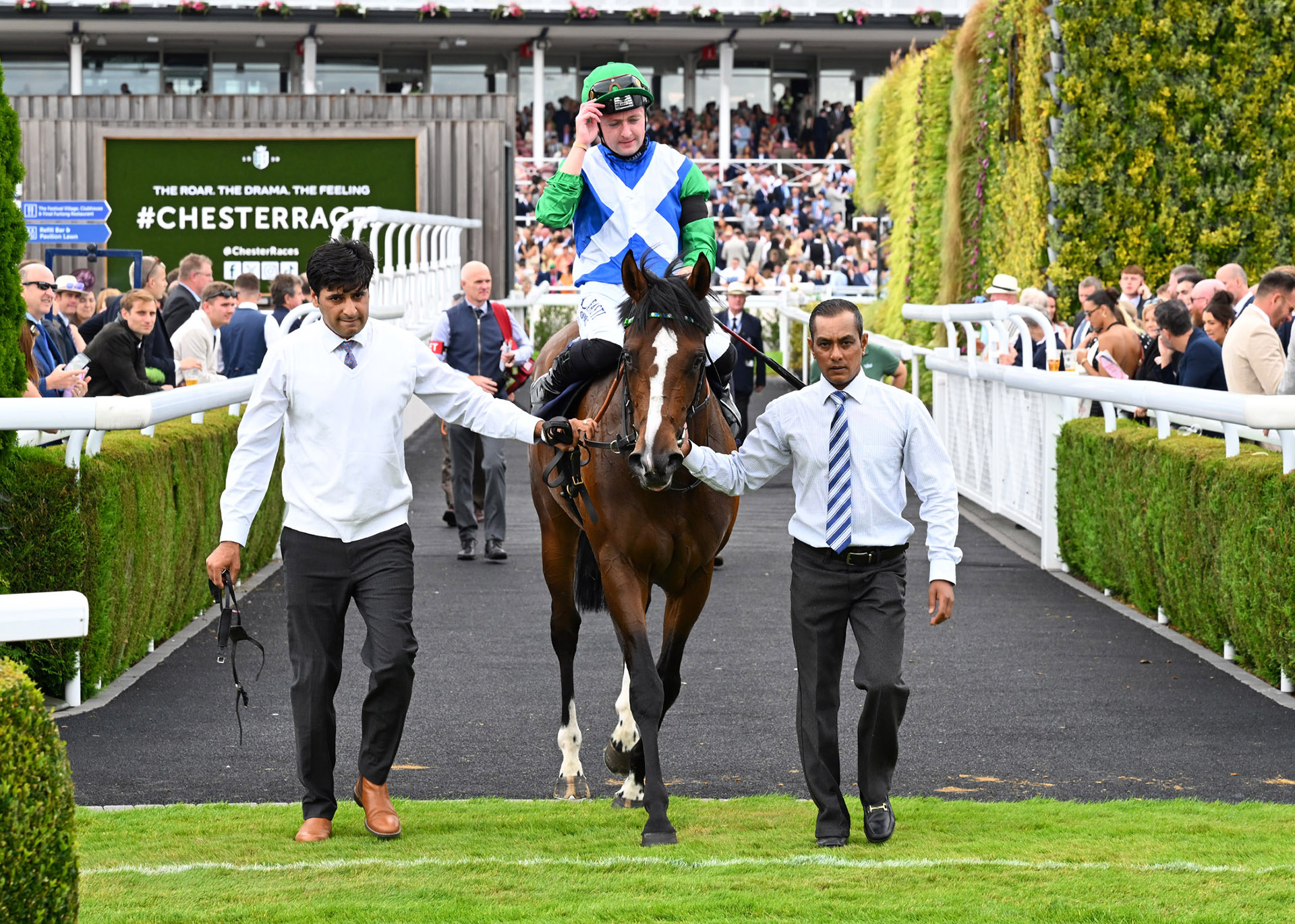 Rapidly becoming a Roodee specialist, Rosenpur (9/2) recorded his second course victory in as many weeks when taking the seventh race in tidy style, booted home by 1 ¾ lengths to score for George Wood and Jennie Candlish. Smartly away from a handy position in Stall 2, Rosenpur went straight into the lead through the opening couple of furlongs, leading the way from the well-backed Kodiac Thriller (5/2F) and Duran (11/4). Still hard on the bridle rounding the home turn, it looked all too easy for Rosenpur in the final quarter mile, the two-time course winner cornering well before extending away into a clear and unassailable lead in the final furlong to record a cosy victory. A match made in heaven, George Wood and Rosenpur have now won five races together in 2025!