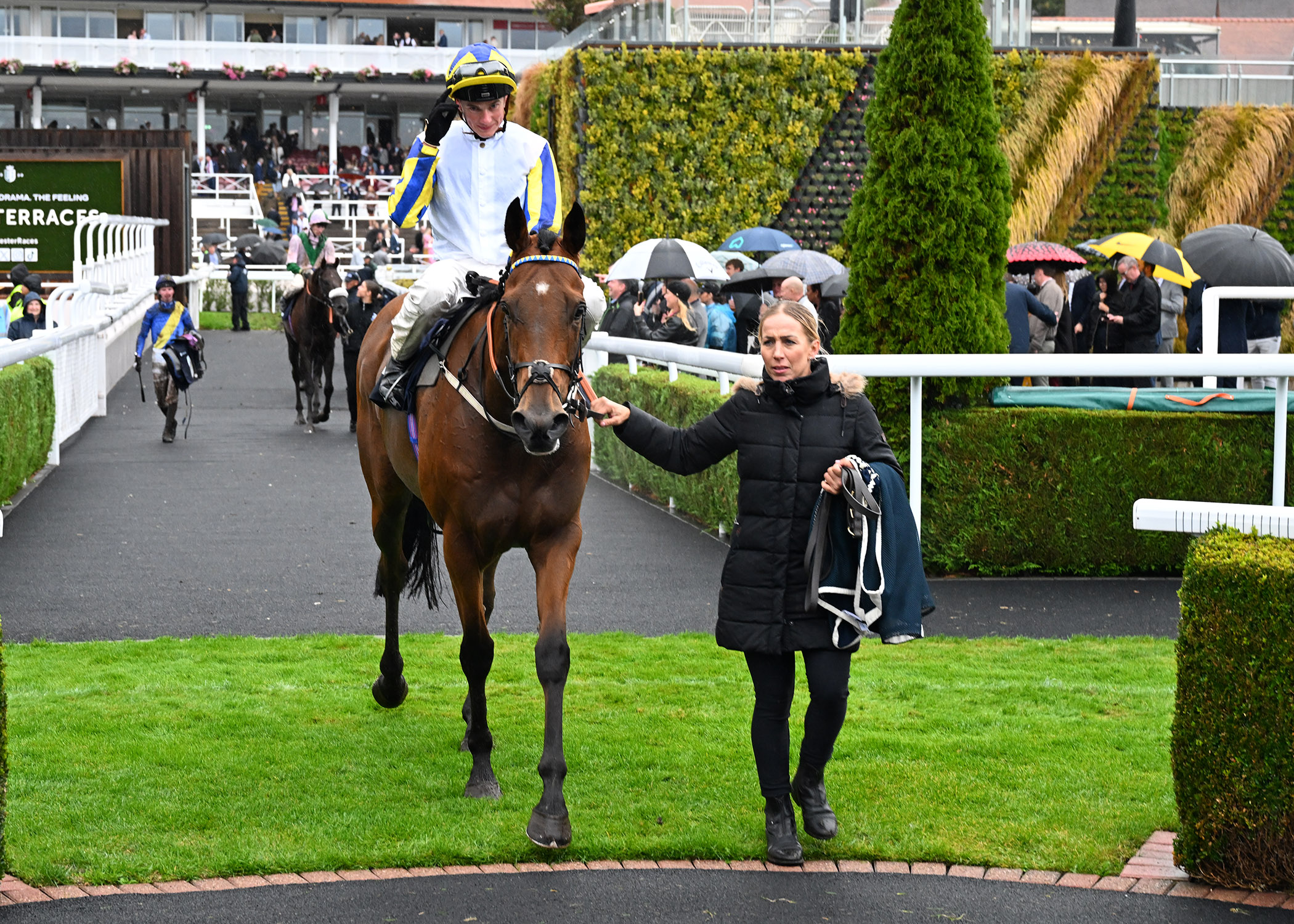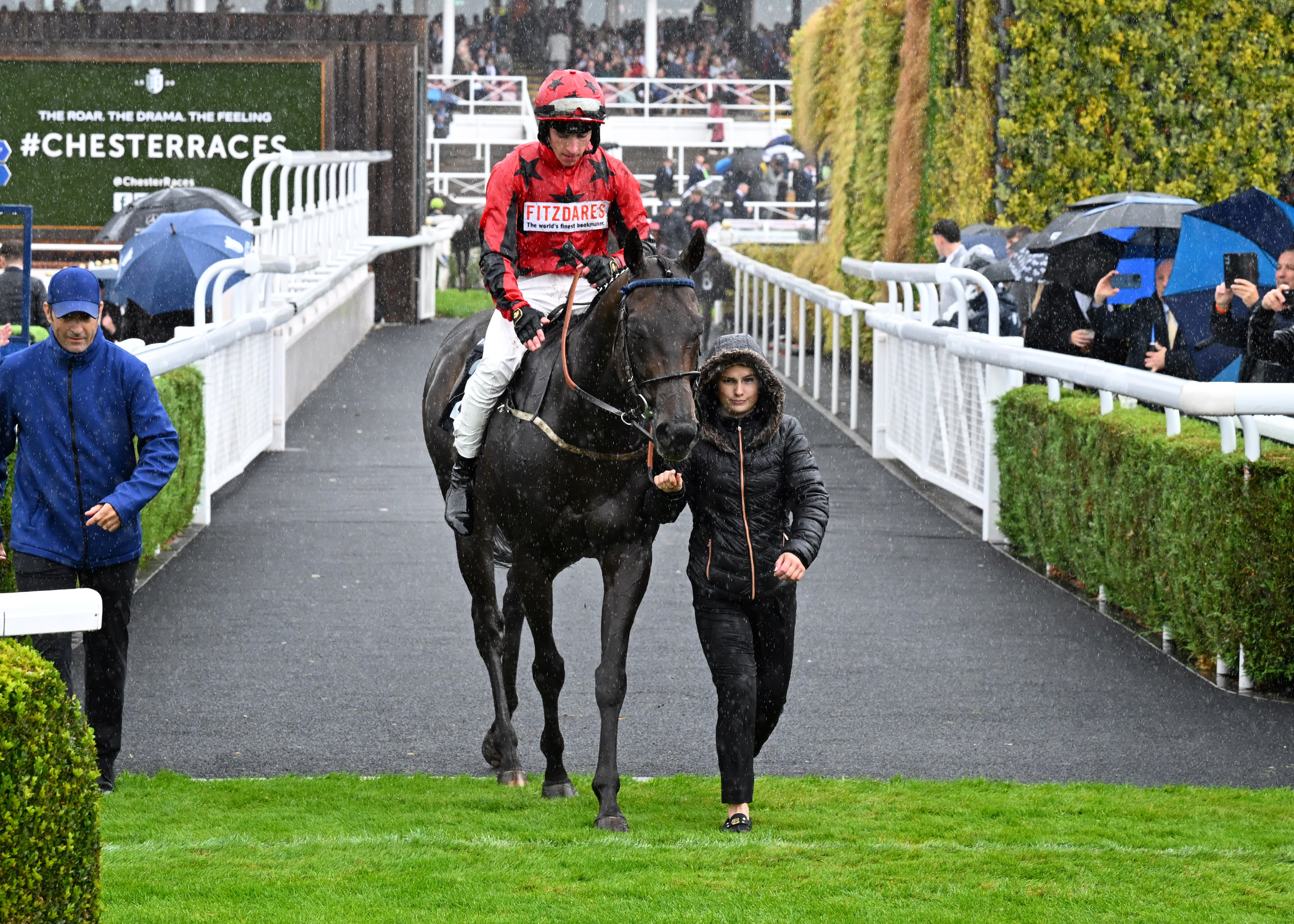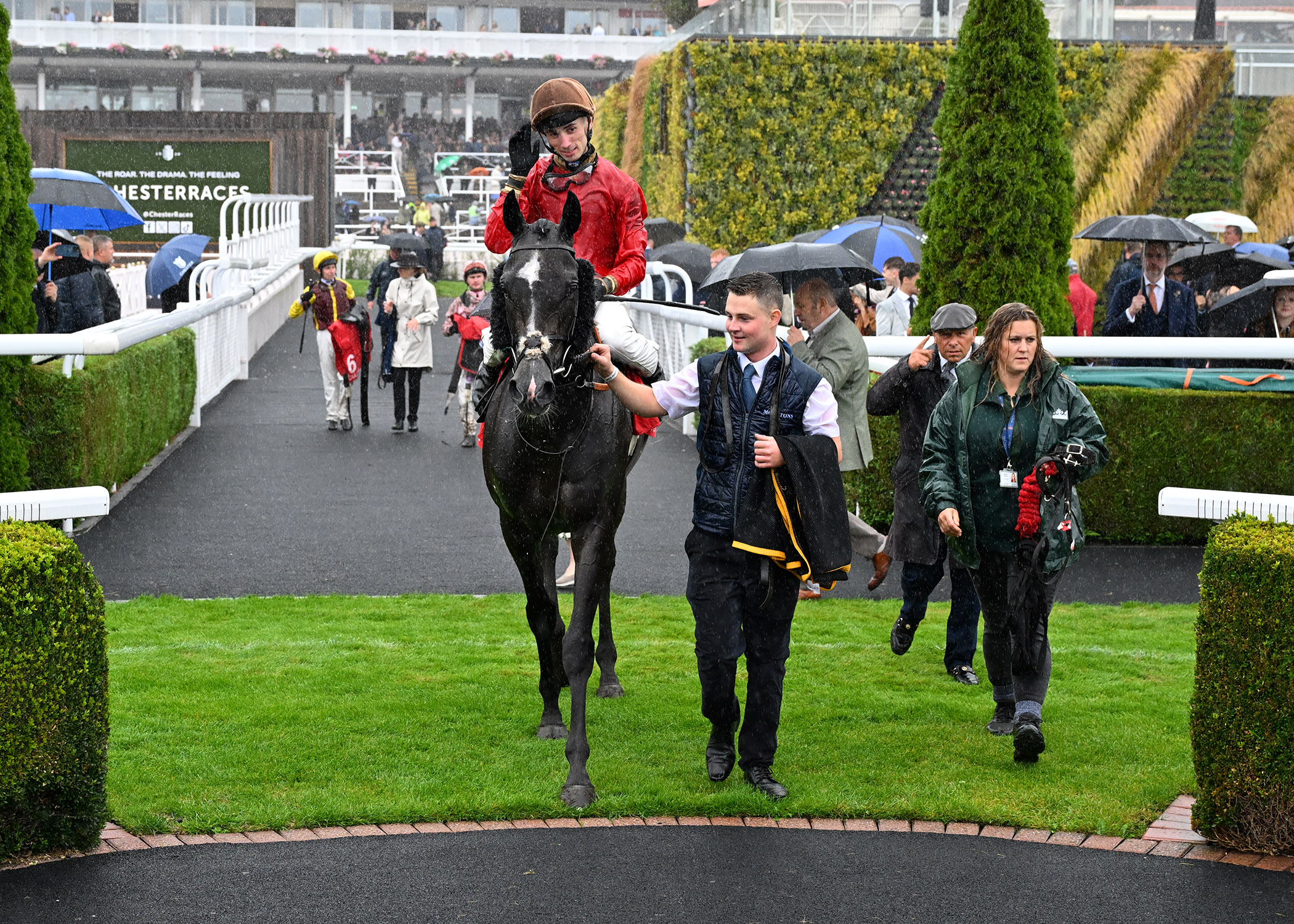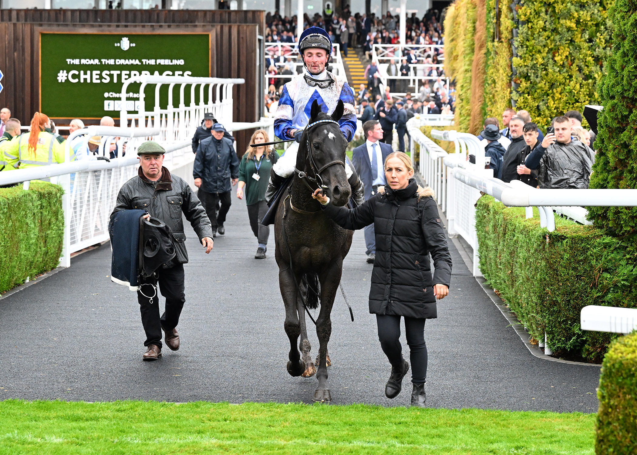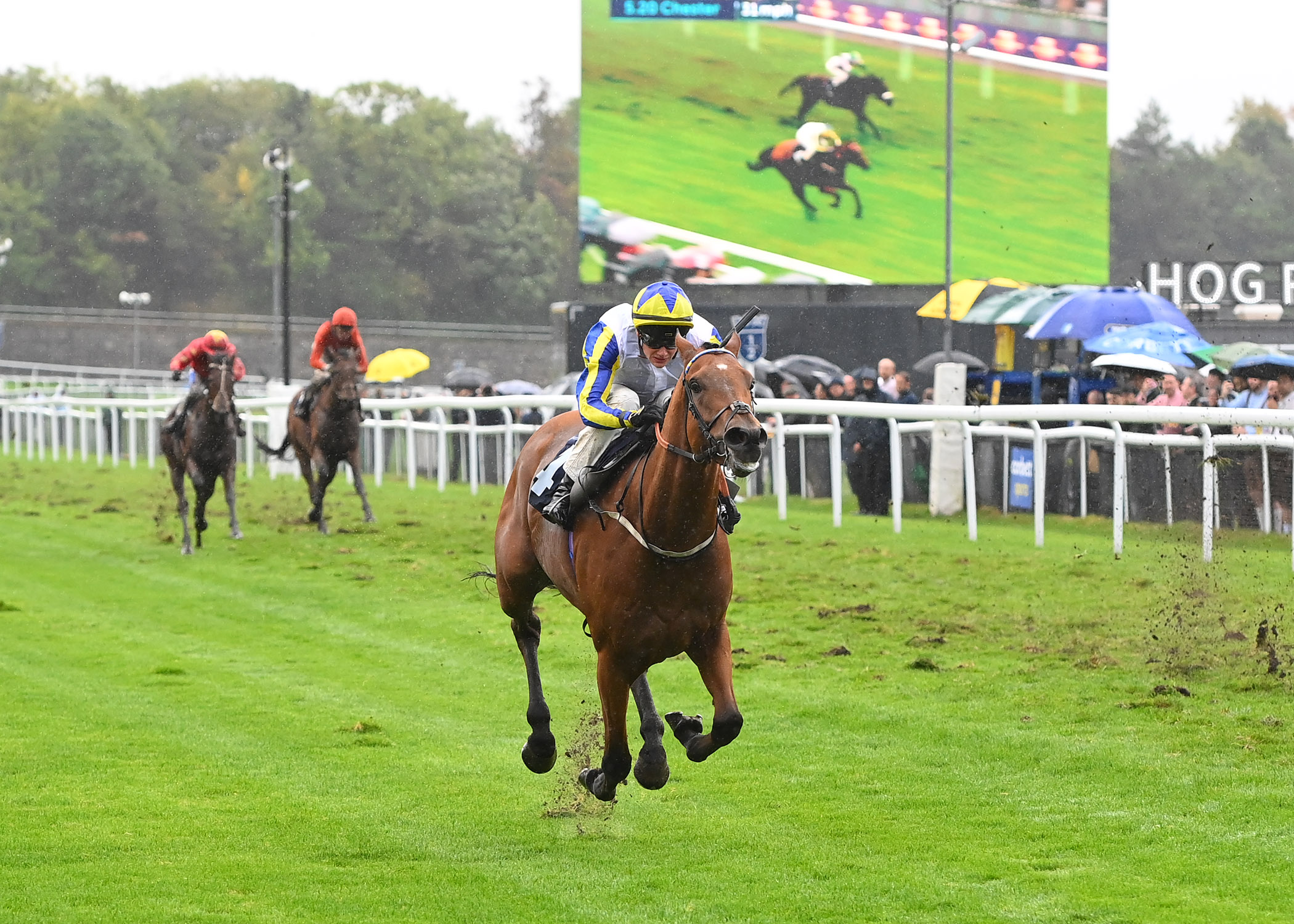 A familiar face on the Roodee, Paws For Thought (9/4) secured his sixth win at the track when running out a taking winner of Race 4, staying on strongly through to mud to score for Charlie Maggs and Donald McCain. Racing towards the front of the chasing pack, Paws For Thought was made to bide his time in the early stages, sitting around eight lengths behind as runaway leader Secret Mistral (15/2) led them through halfway. With just a couple of furlongs left to negotiate, Paws For Thought briefly looked to have a lot of work to do around the home turn, still a fair way behind as Secret Mistral made her way into the straight. However, rallying well once ridden past the furlong marker, Paws For Thought quickly cut back the deficit, taking the lead half a furlong out before kicking clear in style to provide young Charlie Maggs with his third career winner on the Roodee!