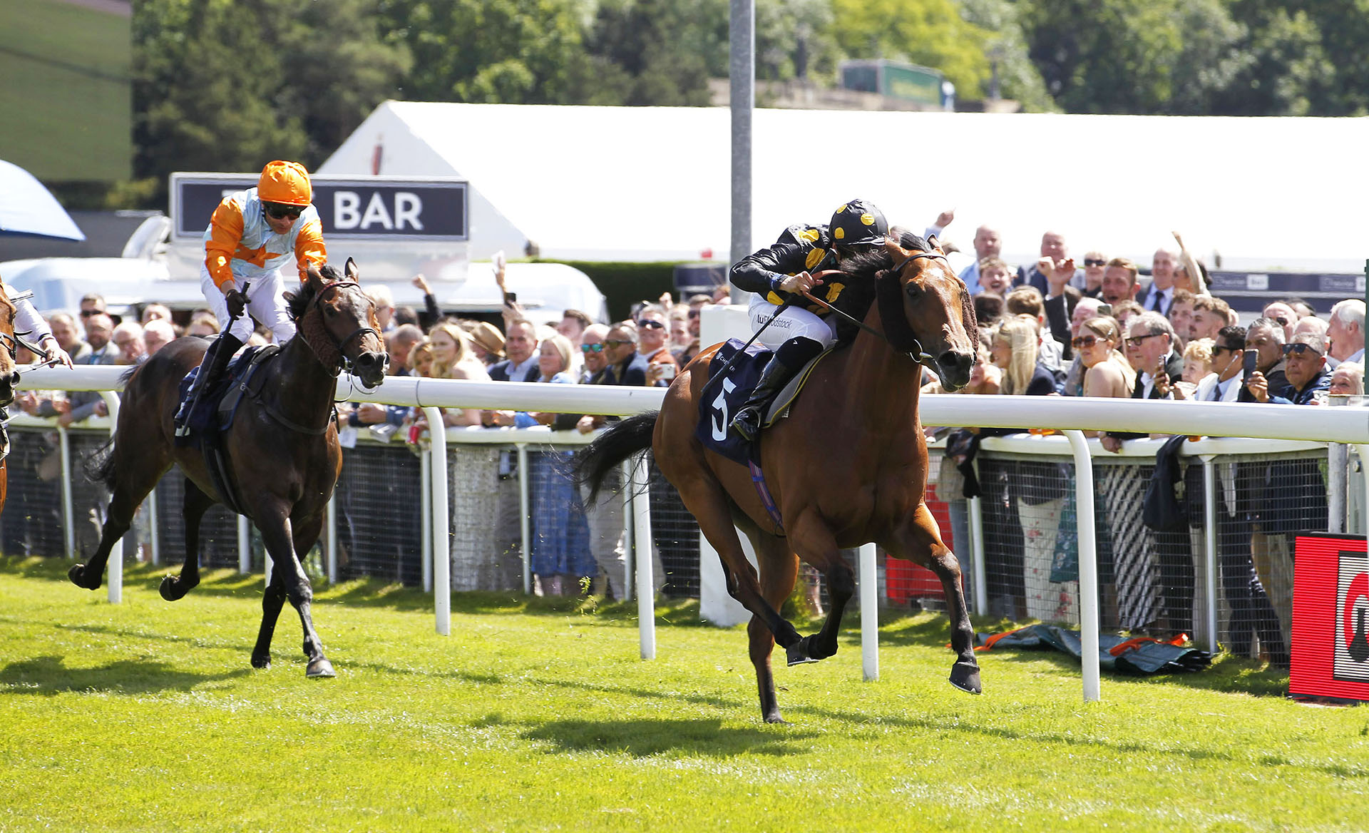 Usually a rare sight on the Roodee, the penultimate race of the day saw an impressive last-to-first victory, the winning horse coming the in the shape of Touchwood (9/1) who ran on gamely to score by a neck under James Sullivan for the Ruth Carr stable. Slowly away, Touchwood dwelt in rear through the opening five furlongs, James Sullivan biding his time before attempting to make some ground on the chasing pack at the two-furlong marker. With the leaders unable to maintain their position upon entering the straight, the pace collapse enabled Touchwood to make rapid headway down the centre of the track, running on strongly in the final furlong to deny My Honey B (8/1) in the closing stages, with Once Adaay (7/1) two lengths back in third. Always dangerous when teaming up, Sullivan and Carr are perhaps best known for their many victories with top miler Sovereign Debt!